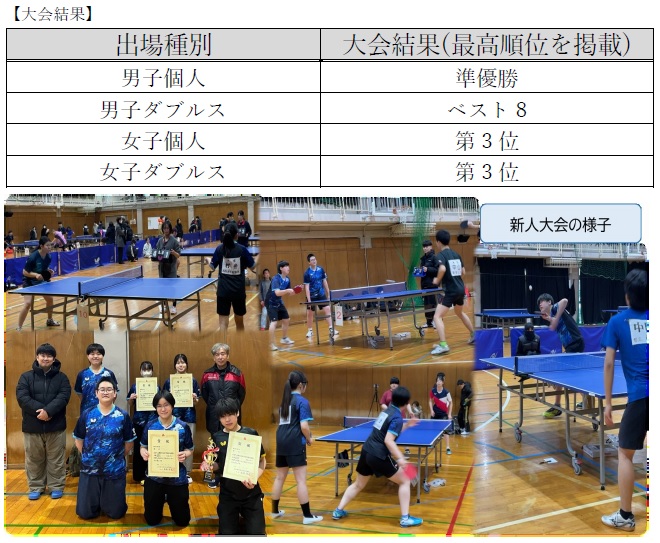 【卓球部】新人大会結果報告