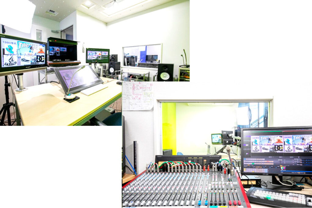 スタジオを完備して、オリジナルの高校通信教育講座を収録・編集しています。