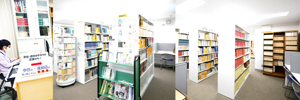 図書室でレポート作成の為の資料集めや雑誌の閲覧、静かな空間で学習したい場合にも利用できます。