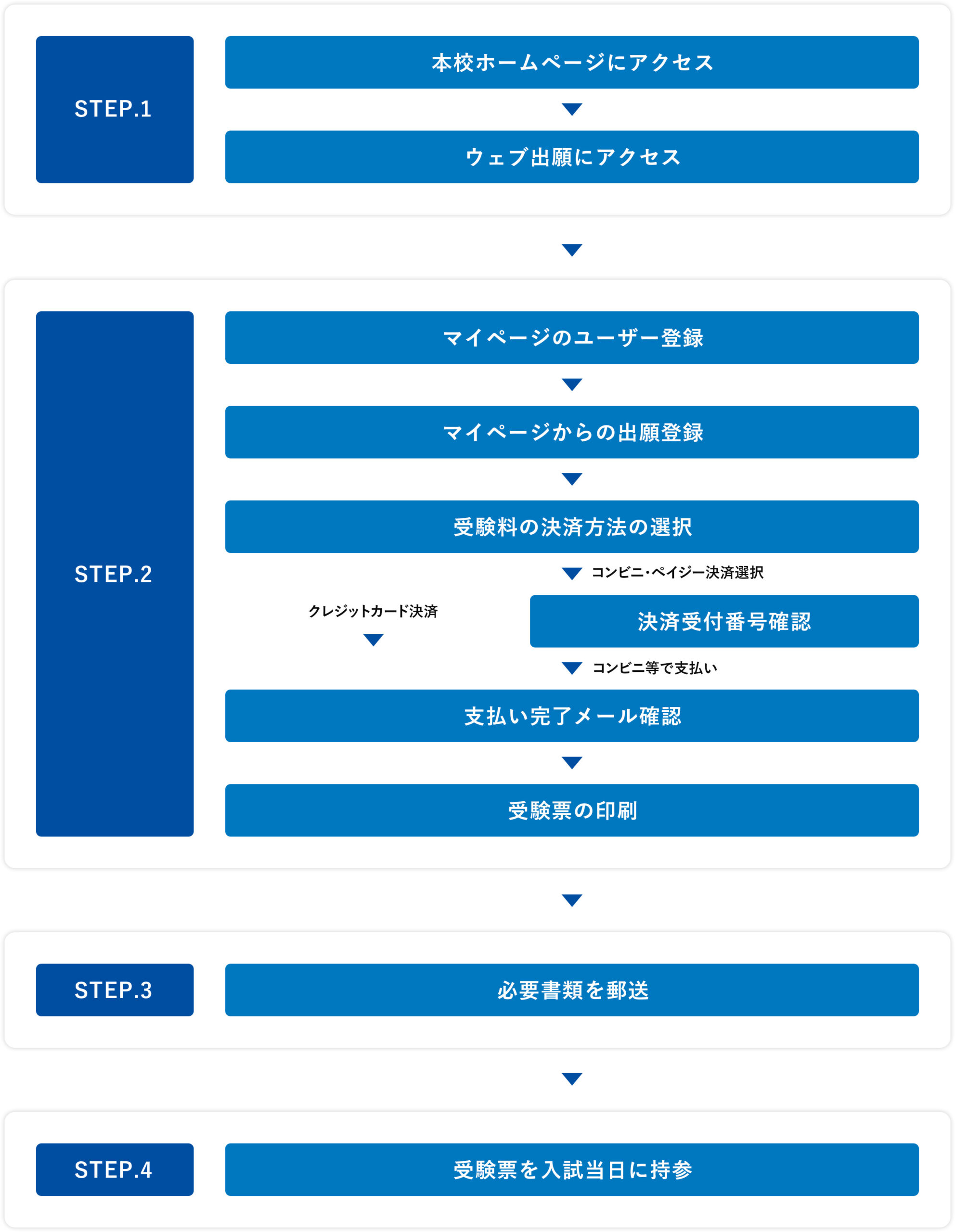 Web出願(こちら)から手続き後、必要書類を郵送で出願。