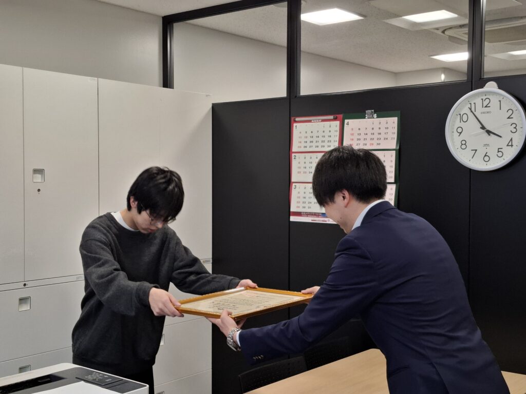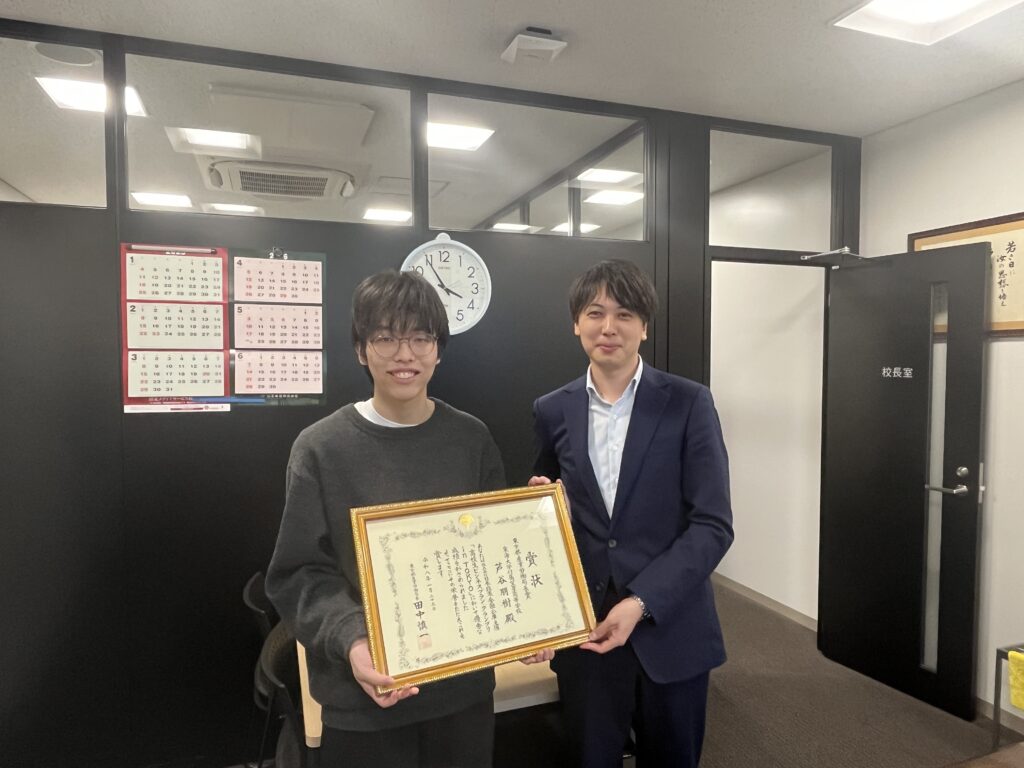 今回の賞状授与は、芦谷さんのこれまでの努力をあらためて振り返る機会となるとともに、本校にとっても大変喜ばしい出来事となりました。