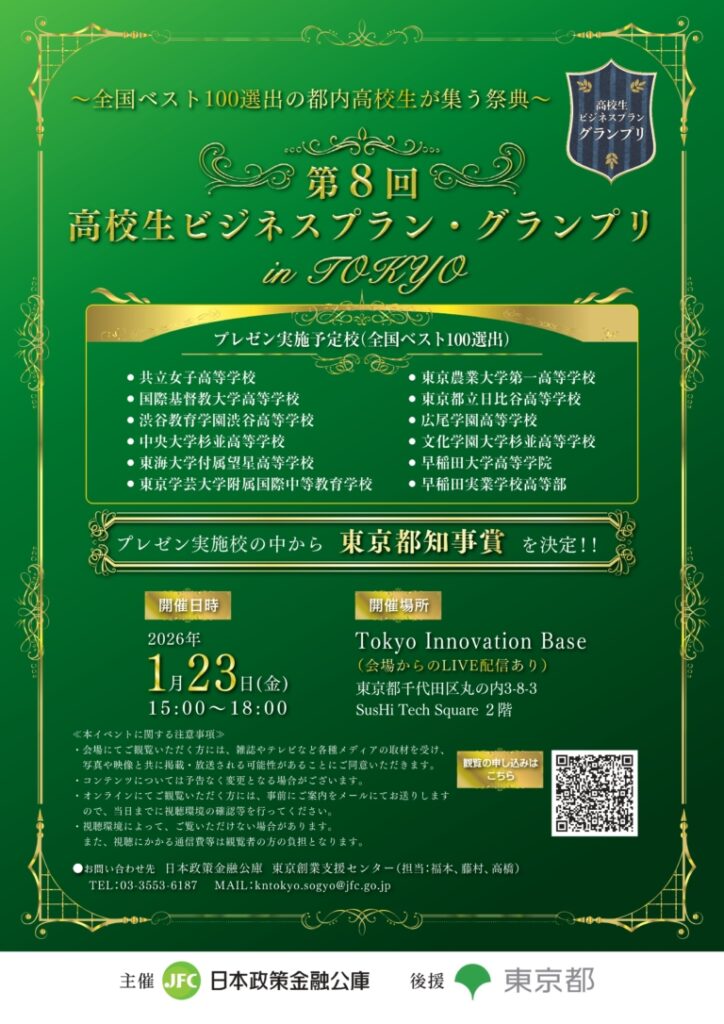 「第8回 高校生ビジネスプラン・グランプリ in TOKYO」にて 本校生徒が 産業労働局長賞 を受賞!